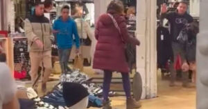 Una mujer comenzó a tirar toda la ropa y estantes que estaban a su paso en una sucursal de la tienda Bershka en la ciudad española de Burgos