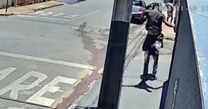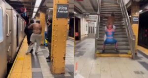El hombre en situación de calle casi logra escapar hasta que un individuo, que porta el icónico el traje de Spider-man, salta desde el techo de un vagón.