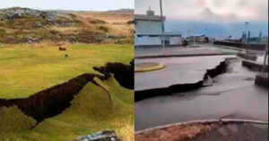 En las imágenes se observa una gran y larga fisura de al menos 25 kilómetros de largo que se ha abierto en varios lugares de Grindavík y sus alrededores debido a la intrusión de magma