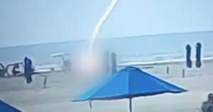 El momento en que le cae rayo a una mujer en la playa quedó registrado en un video que ya circula a través de redes sociales.