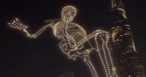 En redes circuló el video de un esqueleto gigante en los cielos de Dubái, hecho con cientos de drones