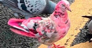 En fotografías y videos es posible observar que efectivamente se trata de una paloma con plumas rosas y algunas grises y blancas