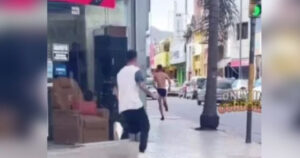 Según internautas, un hombre sin pantalones, descalzo y con la espalda desnuda corrió a toda velocidad del esposo de su querida