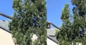Captan a enorme serpiente atravesando el techo de una casa