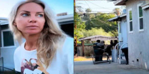 La asustada madre compartió imágenes de la policía sacando a un hombre sin camiseta de una pequeña abertura en la base de la residencia