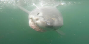 Buzo graba el aterrador momento en que un tiburón blanco le arrebata su cámara