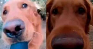 En el clip se observa la cara del perrito en primer plano mientras corre con la cámara en el hocico y se aprecian sus tiernos y graciosos gestos