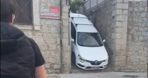 Un conductor pensó que era buena forma bajar su coche por las escaleras en una localidad en España y quedó atorado en su fallido intento