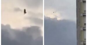 La figura se elevó de entre las nubes y estaría cerca de un edificio lo que permitió ver la altura a la que se encontraba