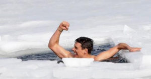 David Vencl nadó 81 metros bajo un lago glacial en Austria usando solo su traje de baño.