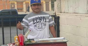 El vendedor, conocido como ‘Don Efra’, se metió con todo y su carrito entre la turba que se manifestaba fuera del ayuntamiento de Los Ángeles.