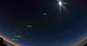 La Luna y los tres planetas se podrán contemplar a simple vista desde México alrededor de las 18:48 horas.