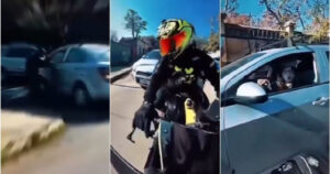 El motociclista descendió de su vehículo y le exigió a la conductora que se bajara