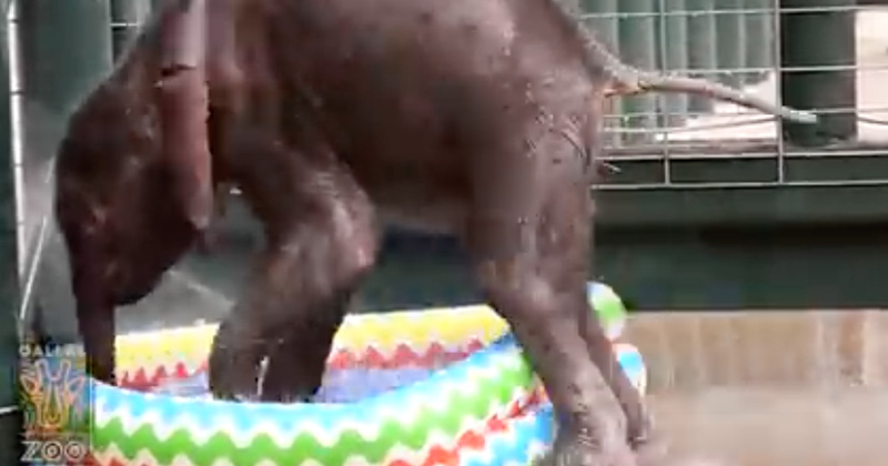 Así reaccionó este bebé elefante tras su primer baño en piscina (Video)