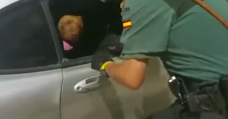Guardia civil española salva a perra de morir encerrada en auto