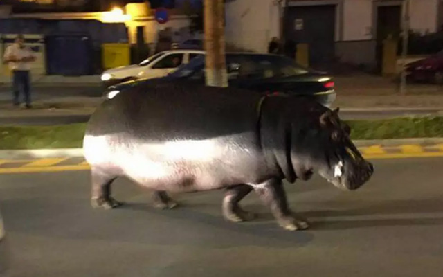 Hipopótamo escapa de circo y causa caos por las calles (Video)