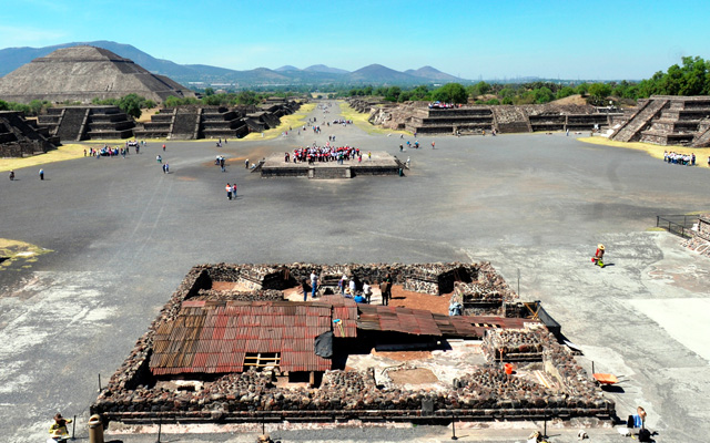 El corazón de esta plaza es de suma importancia en la antigua metrópoli: en él desemboca, al norte, la Calzada de los Muertos, eje del espacio sagrado de la gran ciudad