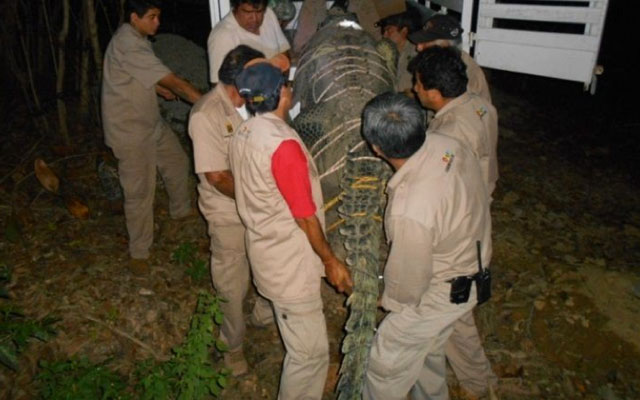 Un cocodrilo de casi 4 metros de largo que se encontraba en un rancho de la comunidad Los Mangos, municipio de Tonalá, fue capturado por personal de la Procuraduría Federal de Protección al Ambiente .