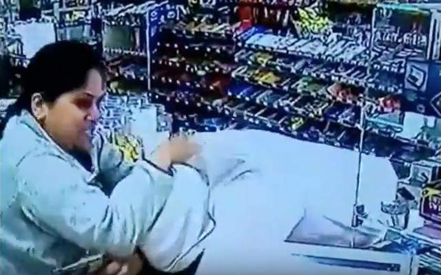 Cajera frustra robo golpeando al ladrón (Video)