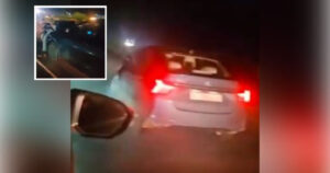 Una familia que viajaba en otro automóvil registró lo sucedido en video y también ayudaron a la detención del responsable de este desafortunado episodio.