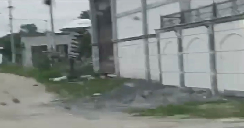 Un video grabado por algún poblador y que circula en redes sociales, muestra los cuerpos apilados de ocho hombres, algunos se encuentran maniatados junto a un portón en la calle