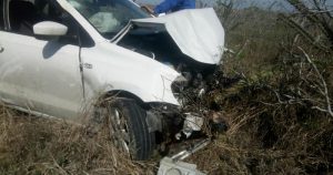 Se le poncha un neumático y termina volcada