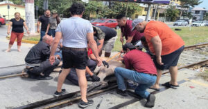 Varias personas, voluntarios y Bomberos municipales se coordinaron para liberar las patas del animal.