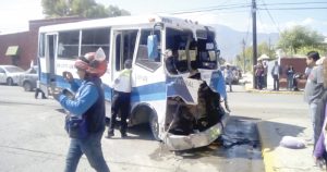 Ocho pasajeros que viajaban en la unidad de transporte resultan lesionados, uno de ellos esta grave; el brutal encontronazo ocurre en el 21 Hidalgo