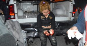 Con un pedazo de block y con las manos quebró los vidrios y se lesiona; también amenazó al propietario de la casa