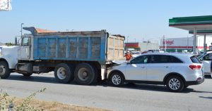 CIUDAD VICTORIA, Tamaulipas.- Por ir buscando el celular, una mujer que manejaba una camioneta de reciente modelo acabó por estrellarse en la parte trasera de