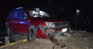 Un matrimonio que viajaba en una Duster se sale del camino y se estrella contra el camellón; la mujer resulta con heridas leves