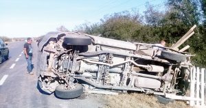 Dos jornaleros que se dirigían a trabajar a Río Bravo, se voltean en su camioneta en el tramo Victoria- San Fernando