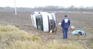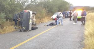 Aparente ponchadura de neumático provoca que la camioneta que tripulaba su esposo diera varias volteretas; se dirigían a esta capital
