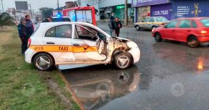 El taxi resulto dañado de la parte frontal y lateral derecha