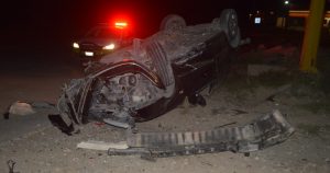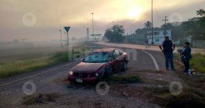 Tripulante de un sedán compacto sigue derecho en la curva que hay en el Eje Vial y Alejandro Prieto, se estrella contra semáforo y vuelca