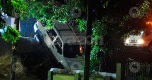 Aparentemente andaba en estado de ebriedad y aunado con la velocidad terminar con llantas arriba. El chofer sale ileso y se retira