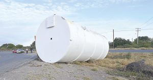 Debido a su peso los sujetadores se rompieron y salió disparada, afortunadamente el deposito de plástico estaba vacío y no provocó ningún accidente que lamentar