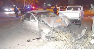 Se le atraviesa una camioneta de una empresa refresquera en el cruce de Naciones Unidas y vías del ferrocarril; el coche del agente fue declarado pérdida total