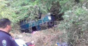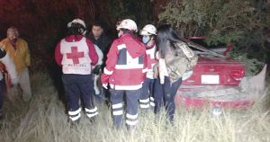 Dos ambulancias de emergencias acudieron para auxiliar los ocupantes de la camioneta Ford Explorer