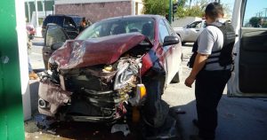 Dado a lo aparatoso del accidente, el automóvil de la mujer terminó trepado en la banqueta