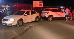 Conductor de un Jetta de modelo antiguo olvida hacer alto en esa intersección y es impactado por una camioneta Dodge Journey