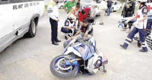 Sufre lesiones en brazos y piernas. Tripulaba una motocicleta deportiva y un microbús al “abrirse” para tomar un retorno le cierra paso y provoca que choque con él