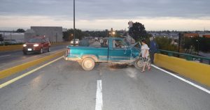 Aparentemente una falla mecánica hace que al chofer no le responda la pesada unidad, golpeando un Jetta que a su vez se proyecta contra otro coche compacto