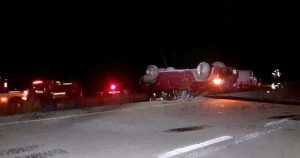 Aparentemente un empleado pierde la dirección del volante de su camioneta cuando trata de agarrar a una hija que se le iba durmiendo