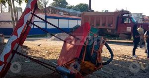 El exceso de velocidad provocó que un conductor derribara a comerciante con todo y su triciclo de tacos