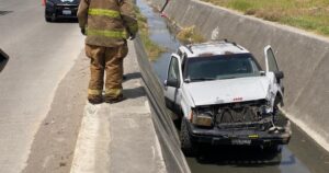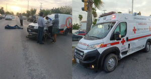 Motociclista es derribado en Avenida de la Unidad, y al ser trasladado al IMSS de la Loma su ambulancia es chocada por troca.