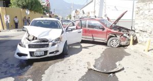 Olvida hacer alto en el cruce con las calles 18 y Melchor Ocampo y estrella su camioneta con otro coche; del golpe se produce una herida en la frente