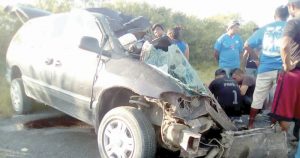 Tragedia enluta a San Fernando; conductor de una ‘Caravan’ y sus dos acompañantes fallecen al invadir carril y chocar de lleno contra una pesera, a una de las pasajeras se le quebró una pierna