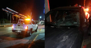 El golpe fue tan duro que ambas camionetas quedaban en los carriles laterales de sur a norte.