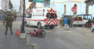 El conductor de una motocicleta terminó con golpes en diversas partes del cuerpo, cuando su unidad derrapó en pleno centro, por zigzaguear entre las calles